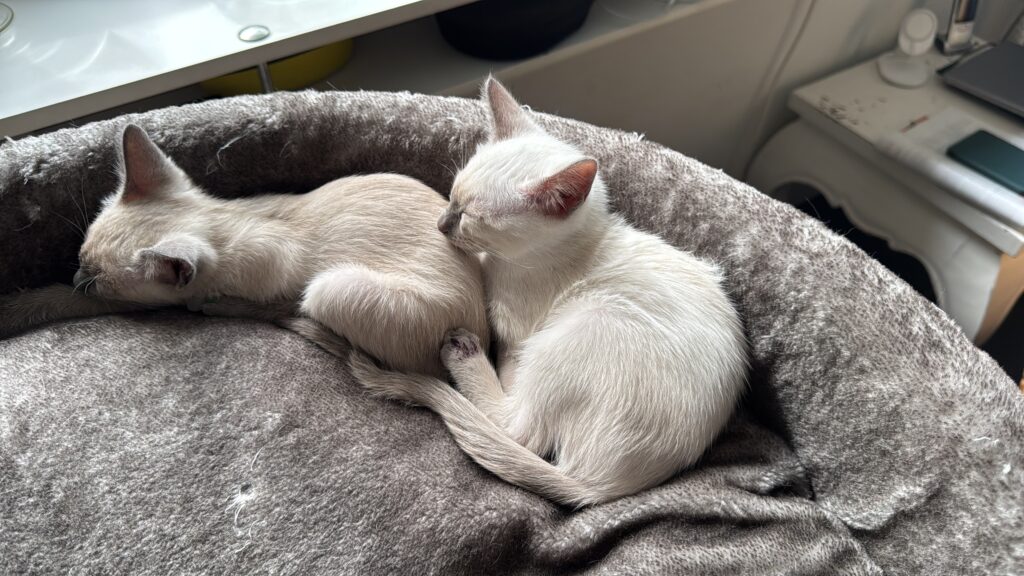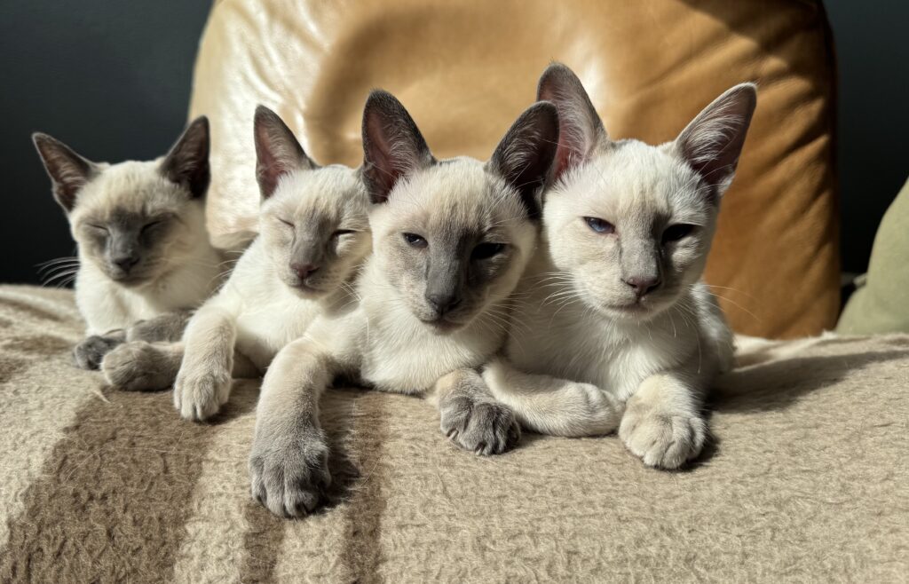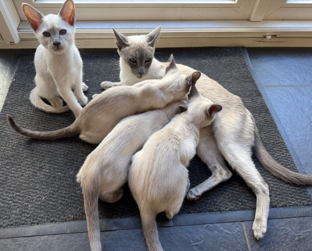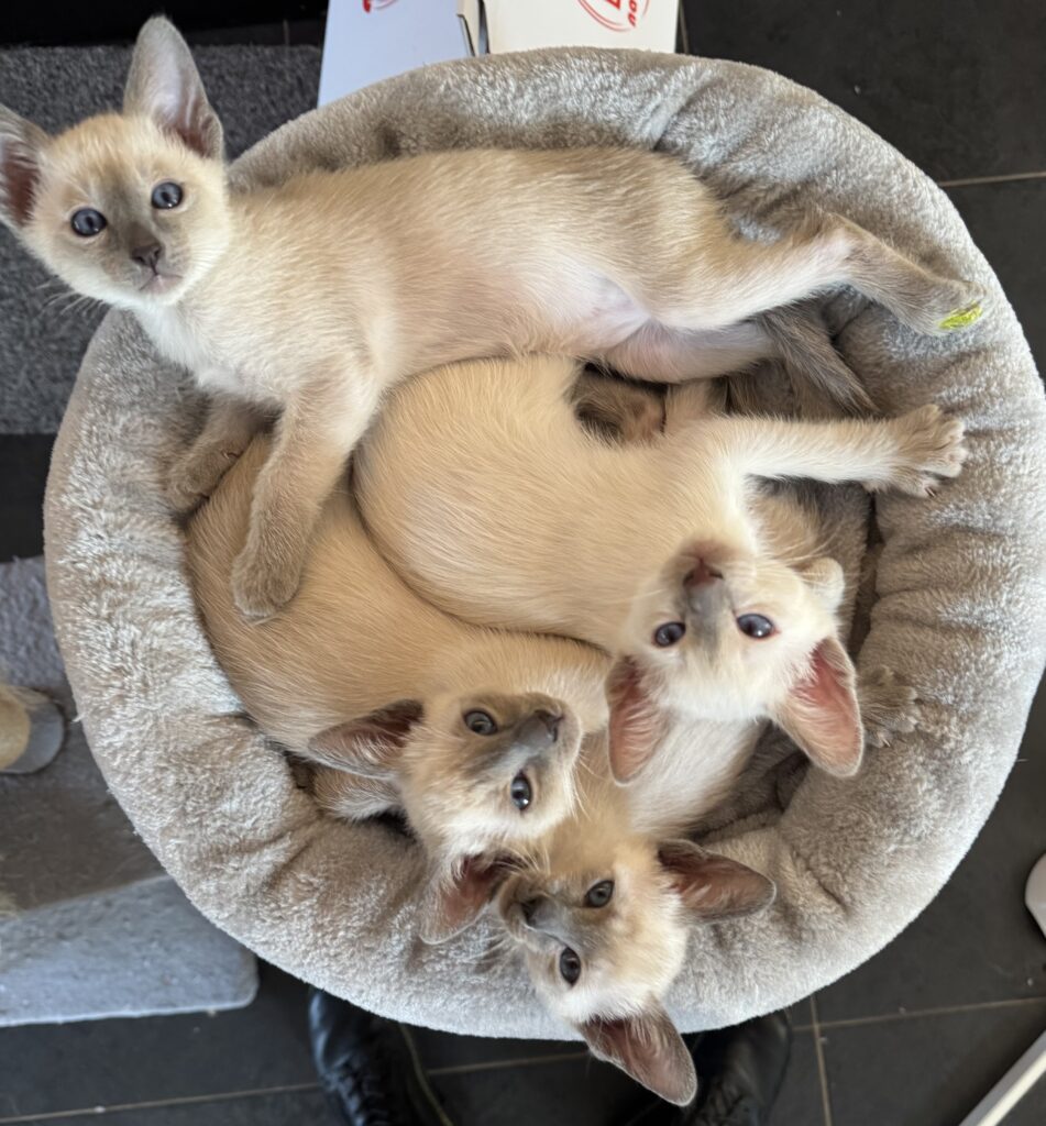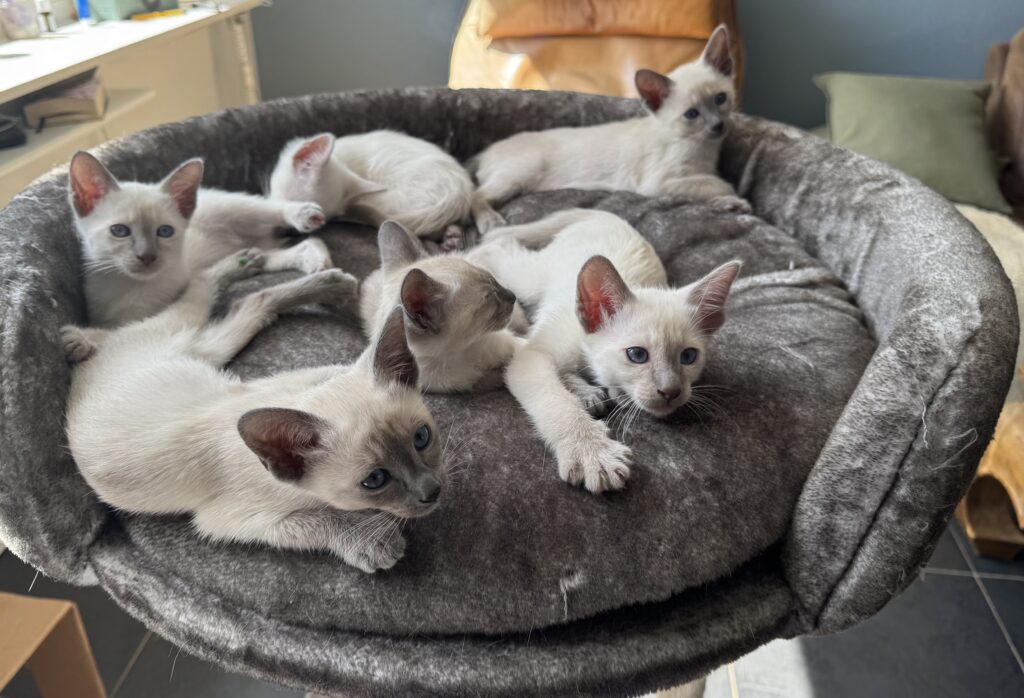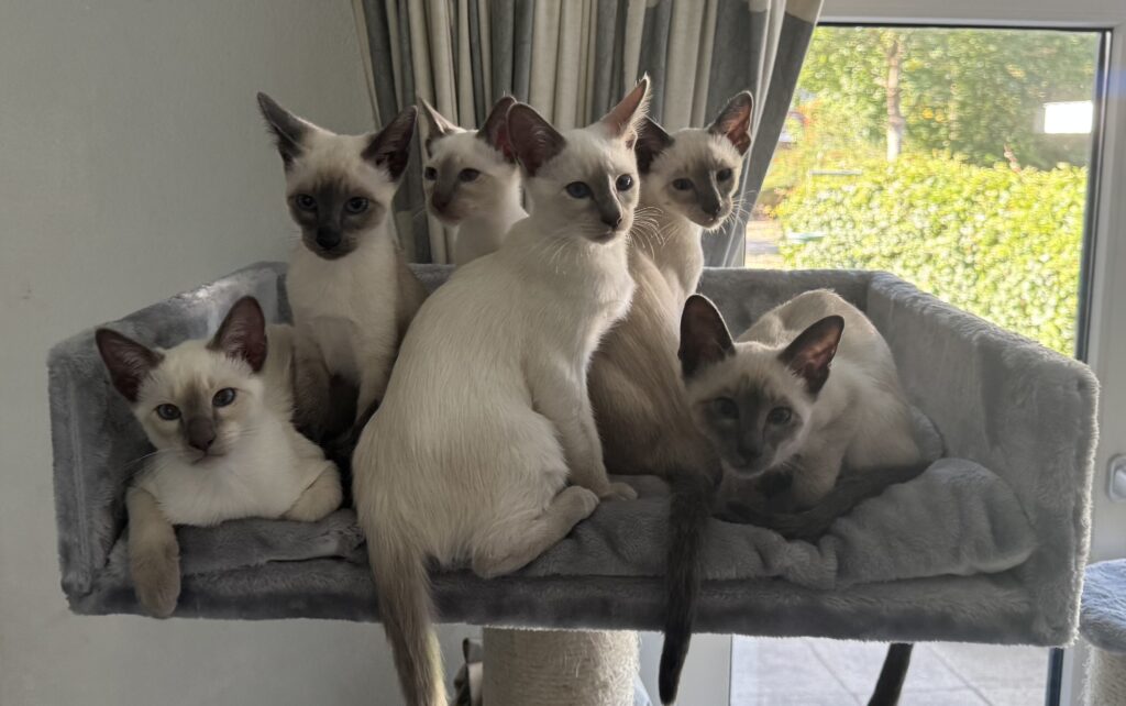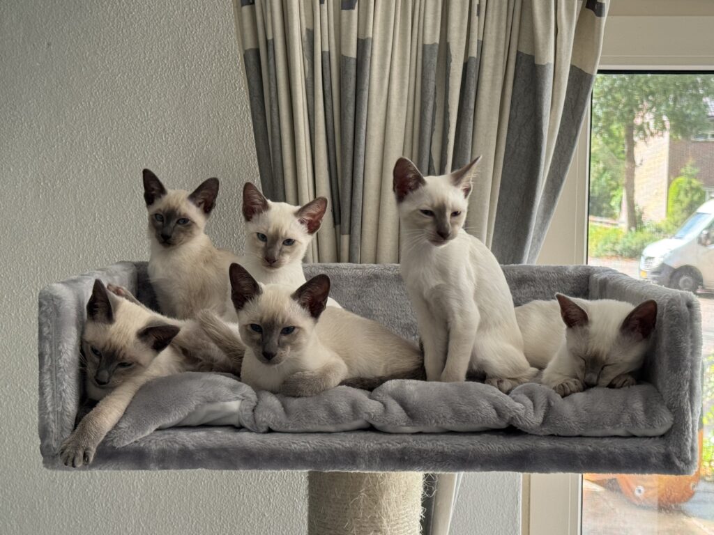 Op 20-6-2025 zijn er 6 kittens geboren25-6-2025 poes oranje gluurt27 juni 2025 kittens 1 week oud2-7-2025 poesje groen 1,5 week oud4 juli 2025, 2 weken oud11 juli 2025, 3 weken oud18 juli, 4 weken oud18 juli, 4 weken oud22 juli 2025 links poes groen en rechts kater blauw25 juli 2025, 5 weken oud links kater blauw en rechts kater roze25 juli 2025 kater geel 5 weken oud25 juli 2025 poes oranje 5 weken oud25 juli 2025 poes groen 5 weken oud25 juli 2025 poes paars 5 weken oud1 augustus 2025, 6 weken oud1 augustus 2025, 6 weken oud8 augustus 2025, 7 weken oud links roze en rechts paars 8 augustus 2025, 7 weken oud, van boven naar beneden geel, blauw, groen, oranje15 augustus, kittens zijn 8 weken oud15 augustus kater blauw gaat net als de rest graag op een dichte bak22 augustus poesje oranje, 9 weken oud22 augustus 2025 poezen groen en paars moe van de dierenarts (chippen en enten)22 augustus 2025 links kater geel en rechts kater roze, 9 weken oud29 augustus 2025, kater blauw 10 weken oud29 augustus 2025, poes paars 10 weken oud29 augustus 2025 links kater geel en rechts poes oranje, 10 weken oud5 september, 11 weken oud Azula met roze, geel, oranje en groen5 september 2025, 11 weken oud links paars en rechts blauw12 september 2025 Kittens zijn 12 weken oud19 september 2025 kittens 13 weken oud26 september 2025, 14 weken oud. Nog 4 die moeten verhuizen. Vlnr; groen, paars, geel en roze3 oktober 2025, 15 weken oud. Deze 2 katers moeten nog verhuizen samen10 oktober 2025, katers 16 weken oud. Ze verhuizen over 2 dagen.